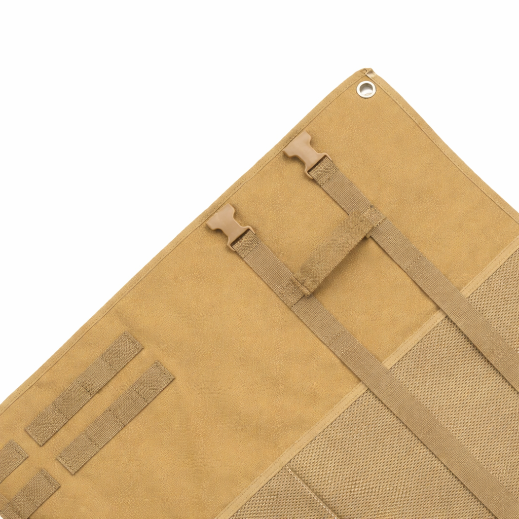Wodoodporna konstrukcja pomaga odizolować od wilgoci, chłodu i zabrudzeń podłoża. Mata dobrze sprawdza się na trawie, ziemi i innych terenowych nawierzchniach, a podczas użytkowania na stanowisku strzeleckim może także pomagać ograniczyć unoszenie pyłu i drobnych zanieczyszczeń w bezpośrednim otoczeniu.